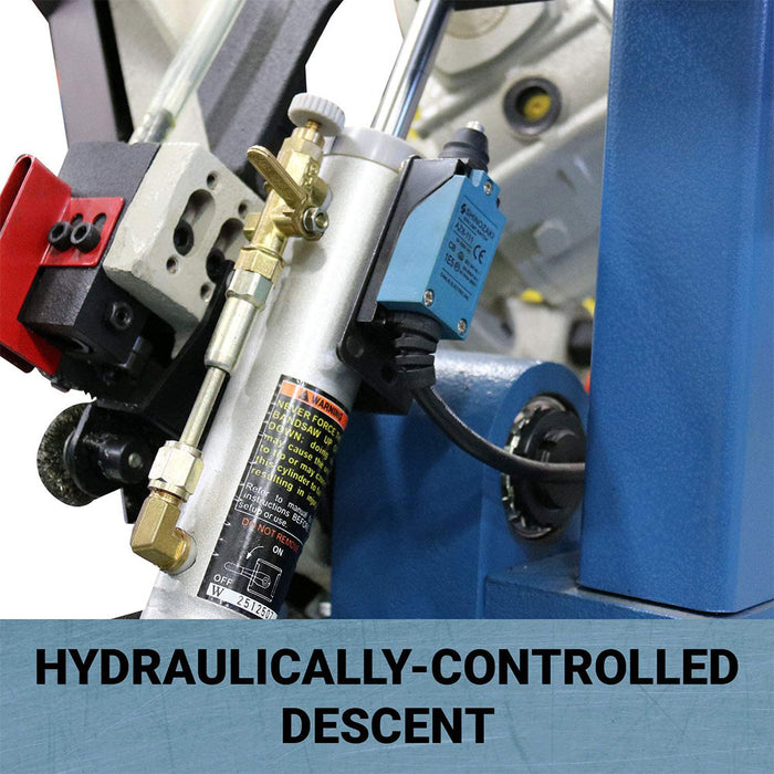 - Hydraulic descent: For production runs, you can switch the machine over to cut using the pressure you input. It will automatically shut down the blade and coola nt system when the cut is completed.