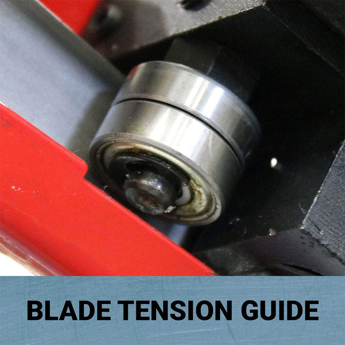 - Patented blade tension device (a liquid-filled gauge) makes it easy to check the tension and correct it.