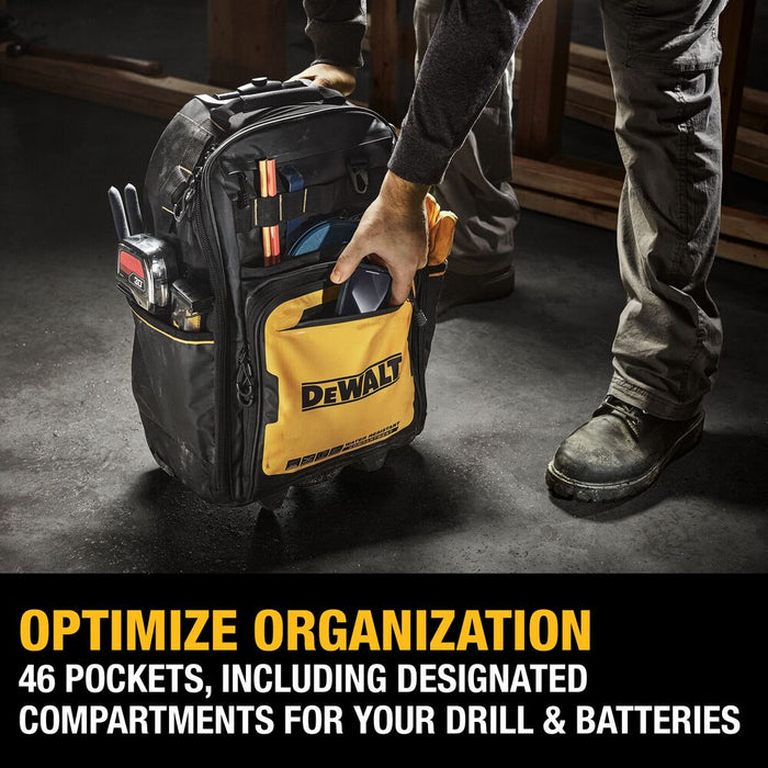 - OPTIMIZE ORGANIZATION - Organize tools with 46 pockets, including dedicated compartments for your drill and batteries.