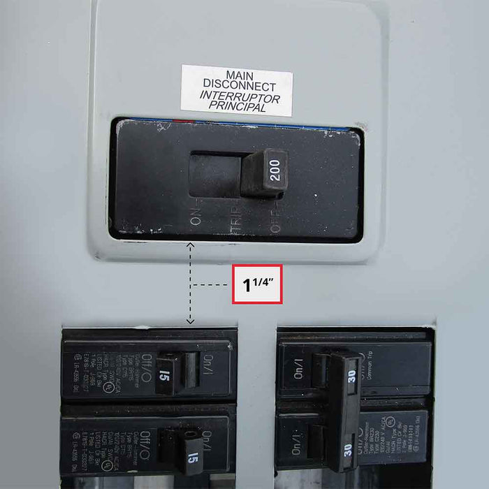 - The 1-1/4? gap between the bottom of the main breaker and top breaker in the panel.