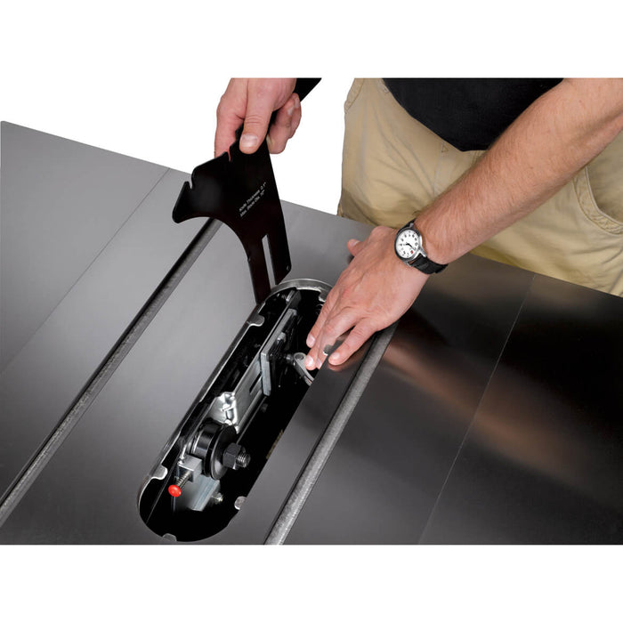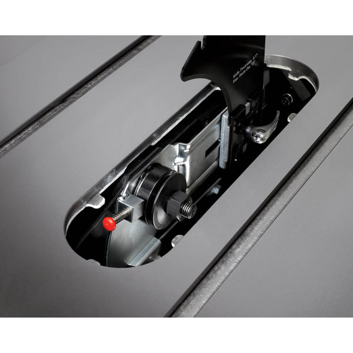 - Precision ground high luster cast iron table tops with front edge bevel for hassle-free workpiece positioning