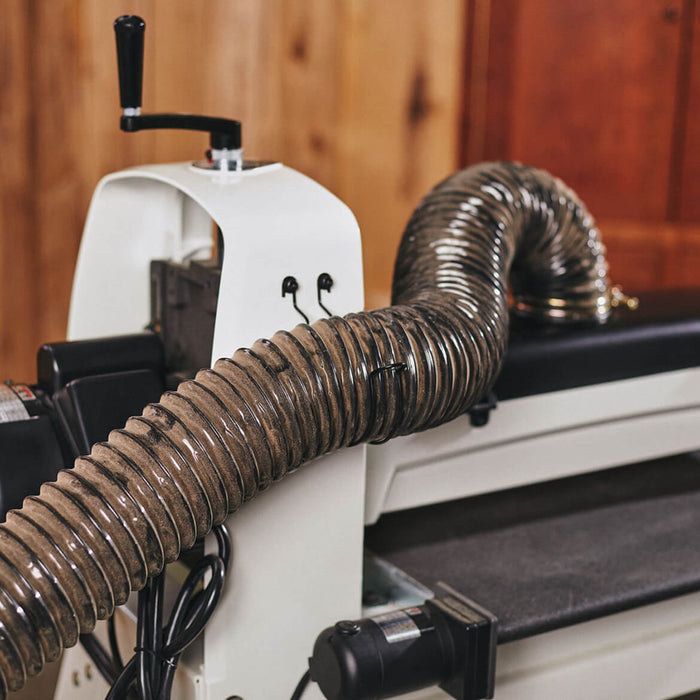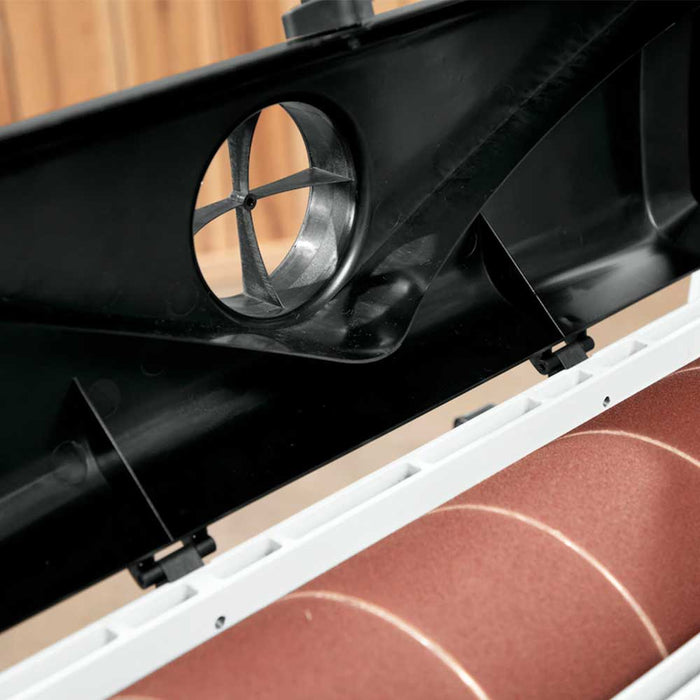 - Dust hood includes an integrated channel that mirrors the shape of the drum and directs chips and dust to the 4 collection port