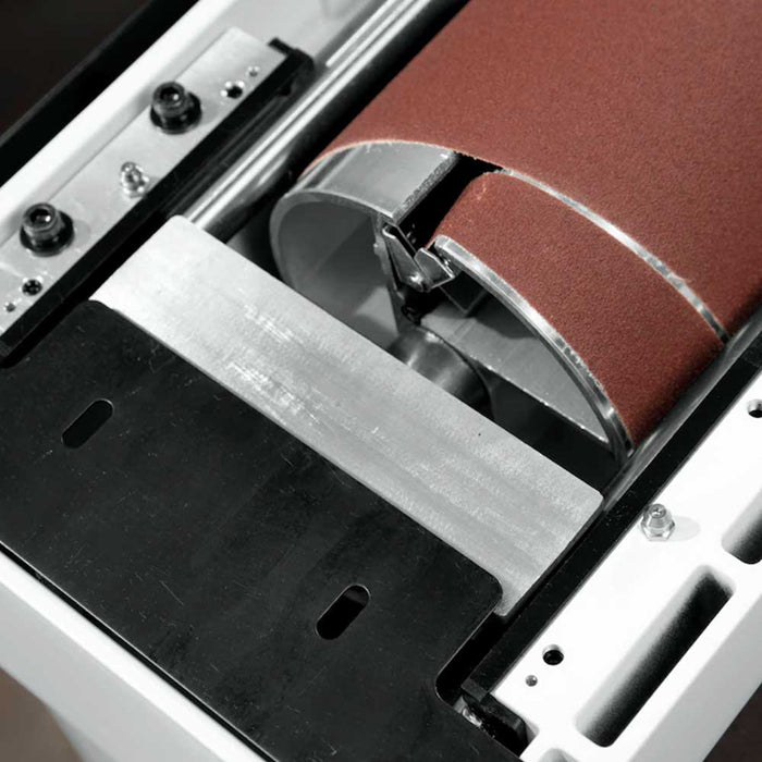 - Snipe is virtually eliminated thanks to the adjustable tension rollers that apply downward pressure to the workpiece