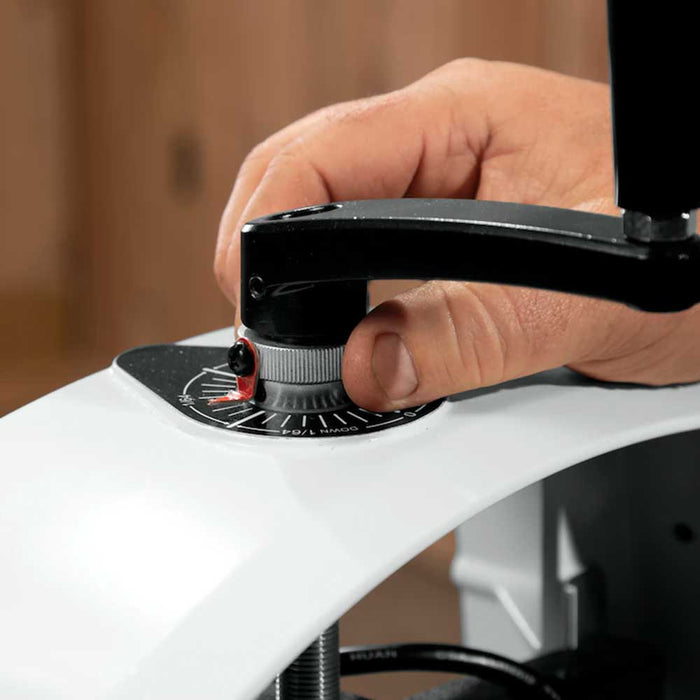 - The relative depth scale on the handwheel allows the user to reset and measure the depth for every project