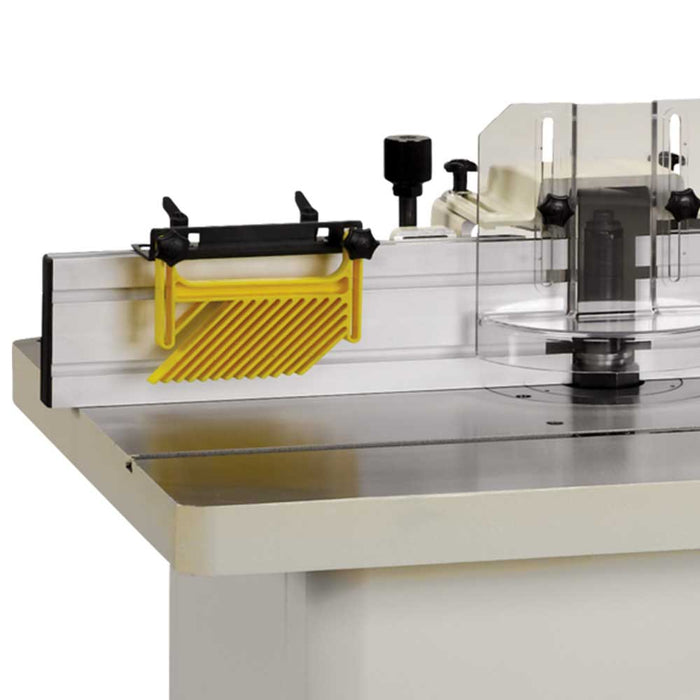 - Extruded aluminum fence comes with T-Slots and 2 feather board hold-downs