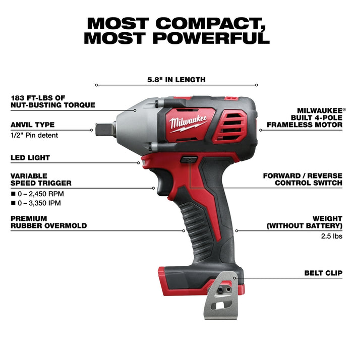 Milwaukee 2659-20 M18 18V 1/2-Inch Impact Wrench w/ Belt Clip - Bare Tool