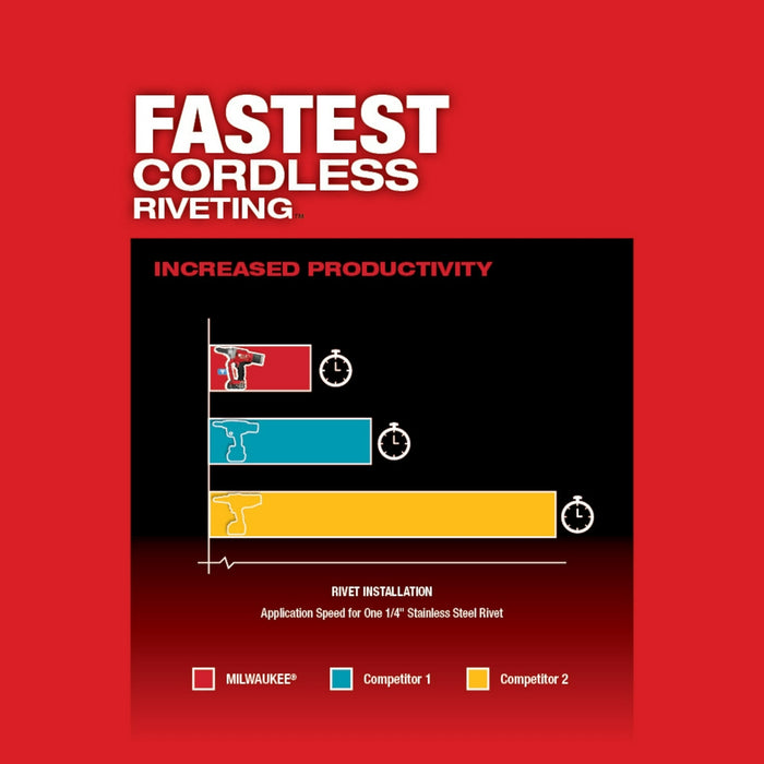 - Installs up to 500 1/4" aluminum blind rivets on one REDLITHIUM CP2.0 battery charge