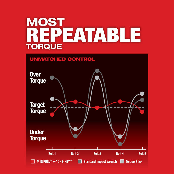 • M18 FUEL with ONEKEY technology provides the most repeatable Impact Wrench in the industry