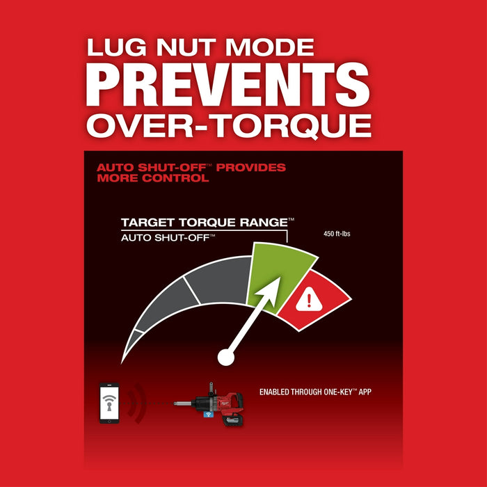 - ONE-KEY enabled Lug Nut Mode Prevents Over-Torque and More Control by automatically shutting off the tool