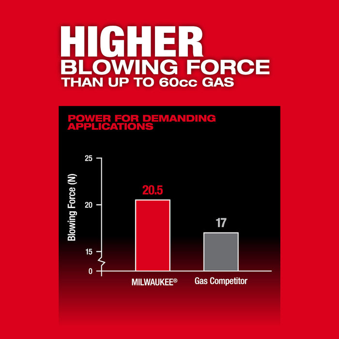 - Delivers a higher blowing force than 60cc gas while maintaining a noise level of 62dB(A)