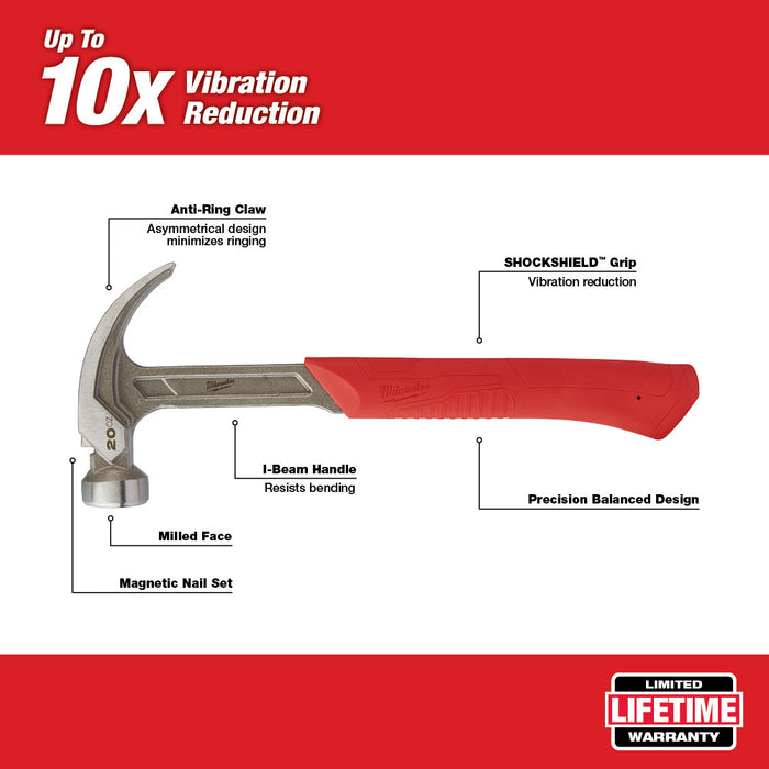 Milwaukee 48-22-9080 20oz Curved Claw Smooth Face Hammer w/ ShockShield Grip