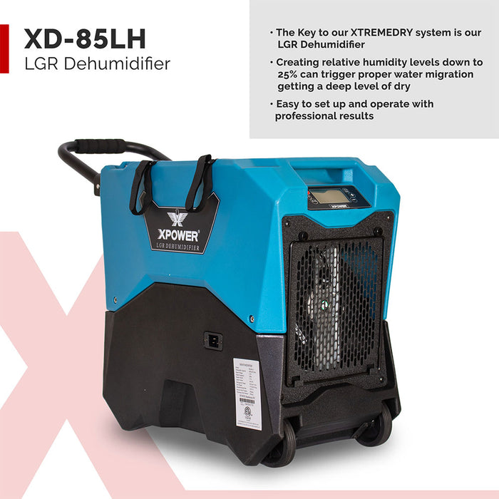 • Commercial Drying w/ LGR Technology – This Tool Kit includes XPOWER’s class-leading commercial XD-85LH LGR Dehumidifier that can handle the toughest of drying jobs. Capable of reducing relative humidity levels in a room down to 25 percent, this powerhouse unit can remove the hidden moisture locked away inside of materials.